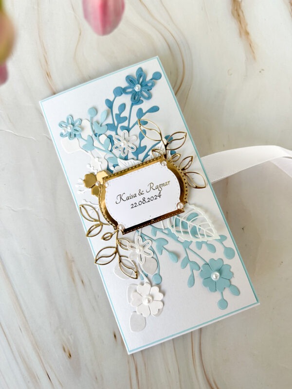 Kaardi sees on rahatasku, mis võimaldab kinkida sularaha või kinkekaardi kaunil ja läbimõeldud viisil. See on ideaalne viis rahalise kingituse kinkimiseks, säilitades samas kingituse isikupära ja südamliku tähenduse.