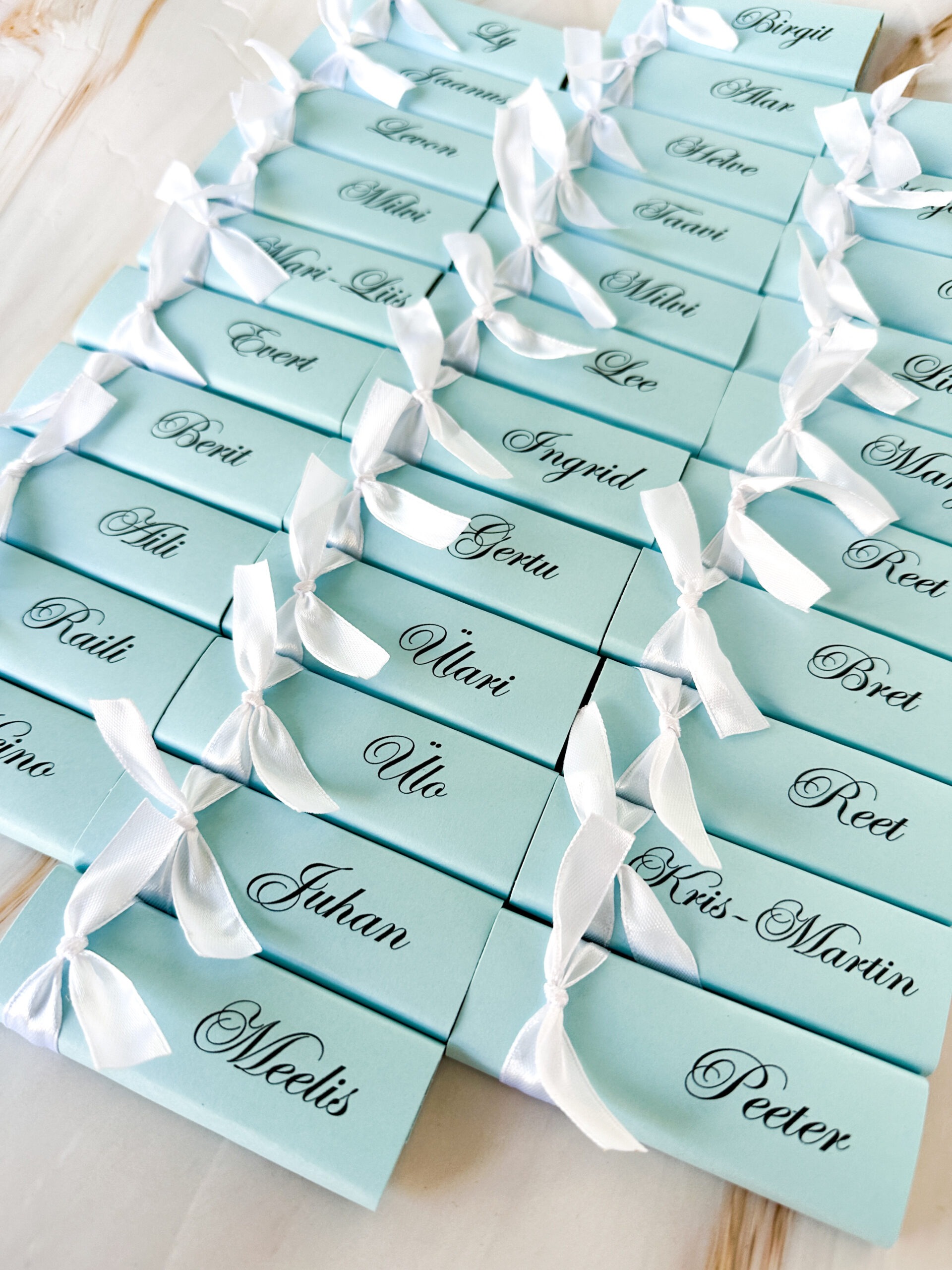 Meie eriliseks tooteks on šokolaadiga kohakaardid, mis ühendavad endas nii praktilisuse kui ka elegantse maiustuse. Šokolaadiga kohakaardid on ideaalne lahendus igasugustele sündmustele, olgu selleks pulmad, sünnipäevad, juubelid või muud pidulikud üritused. Eriti populaarsed on need pulmakülaliste istumiskohtade märgistamiseks, aidates igal külalisel hõlpsasti oma koht leida ja luues peolauale kauni ning ühtse stiili.